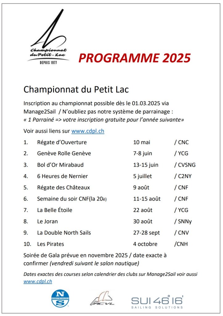 Le Gala CDPL 2025 avec la remise de prix se tiendra le 21 novembre au restaurant du club nautique de Versoix.